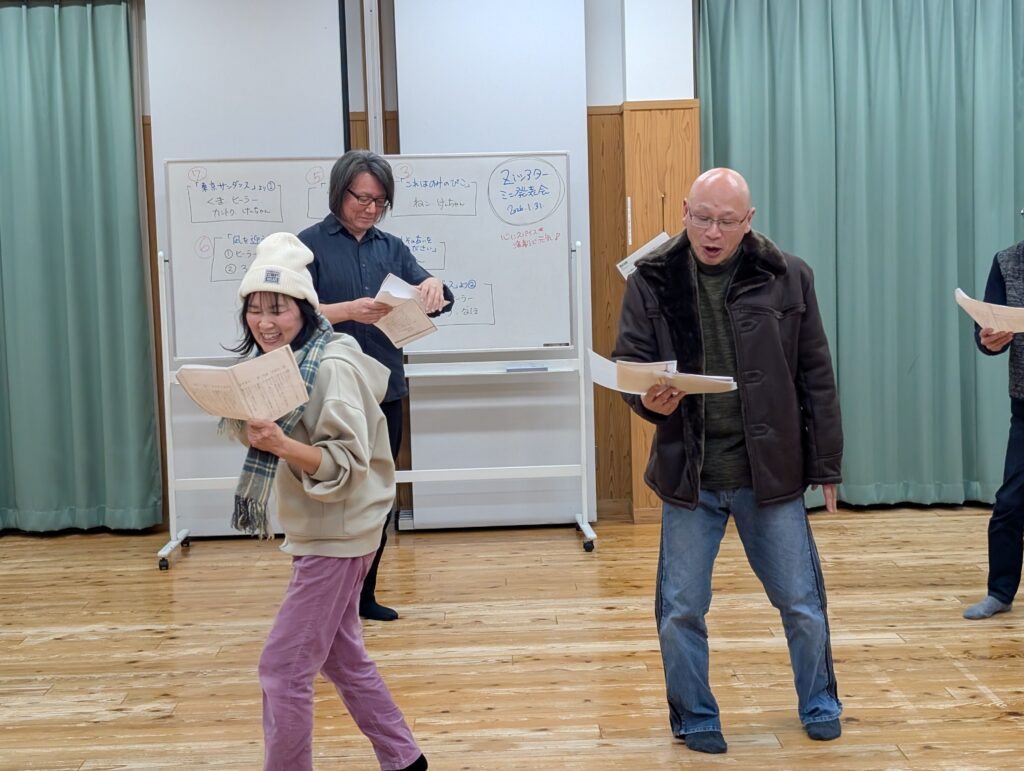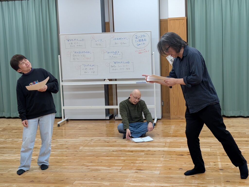 [内容] 呼吸、ストレッチ、発声、滑舌、シアターゲーム、台本読み、等